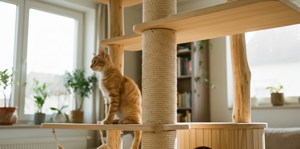 キャットタワーや家具の上など、外敵から身を守りつつ周囲が見渡せるような高い場所を用意してあげましょう。